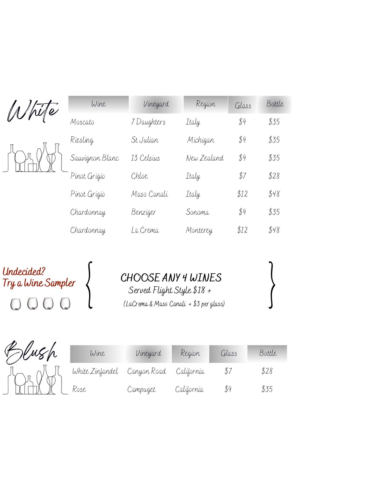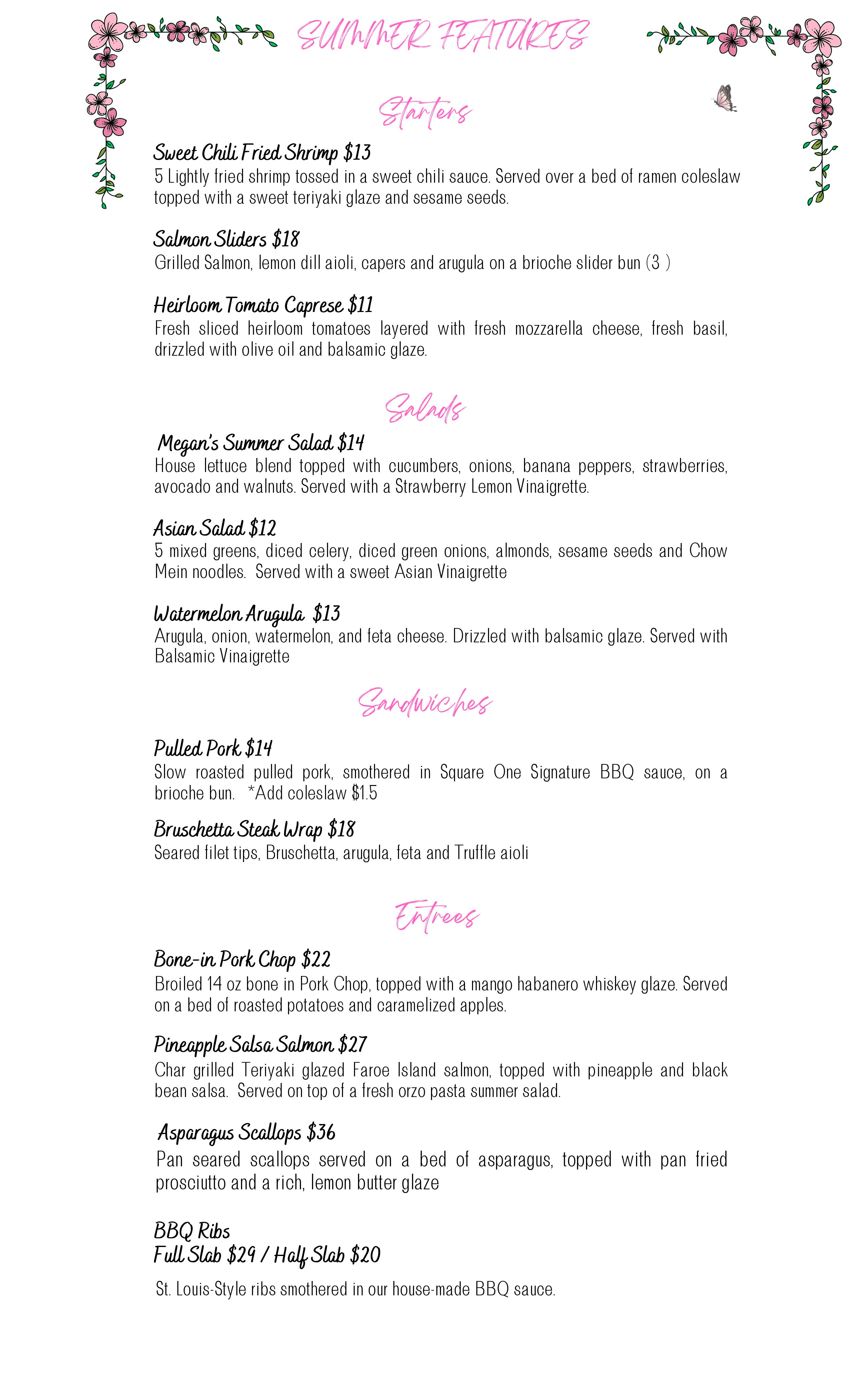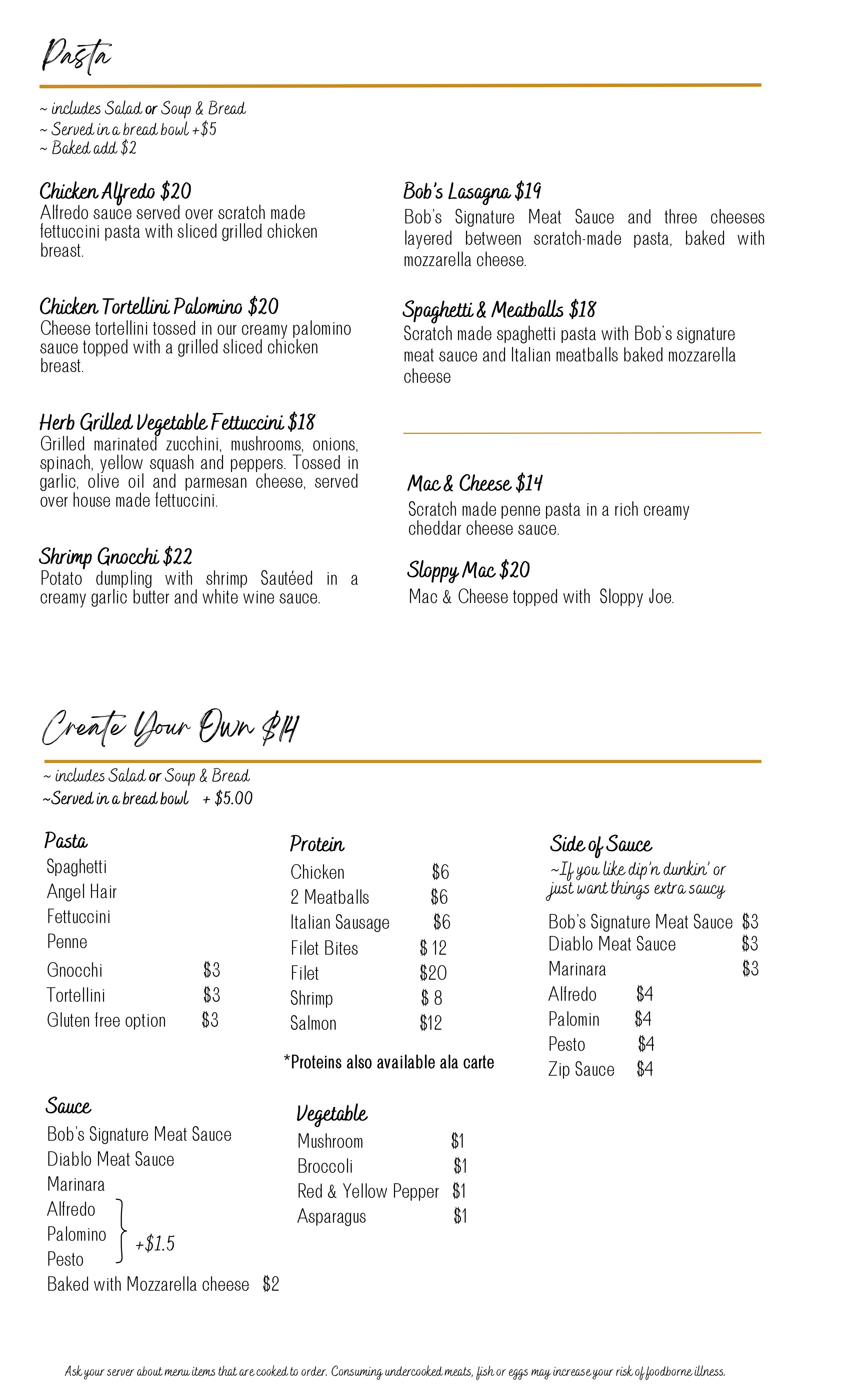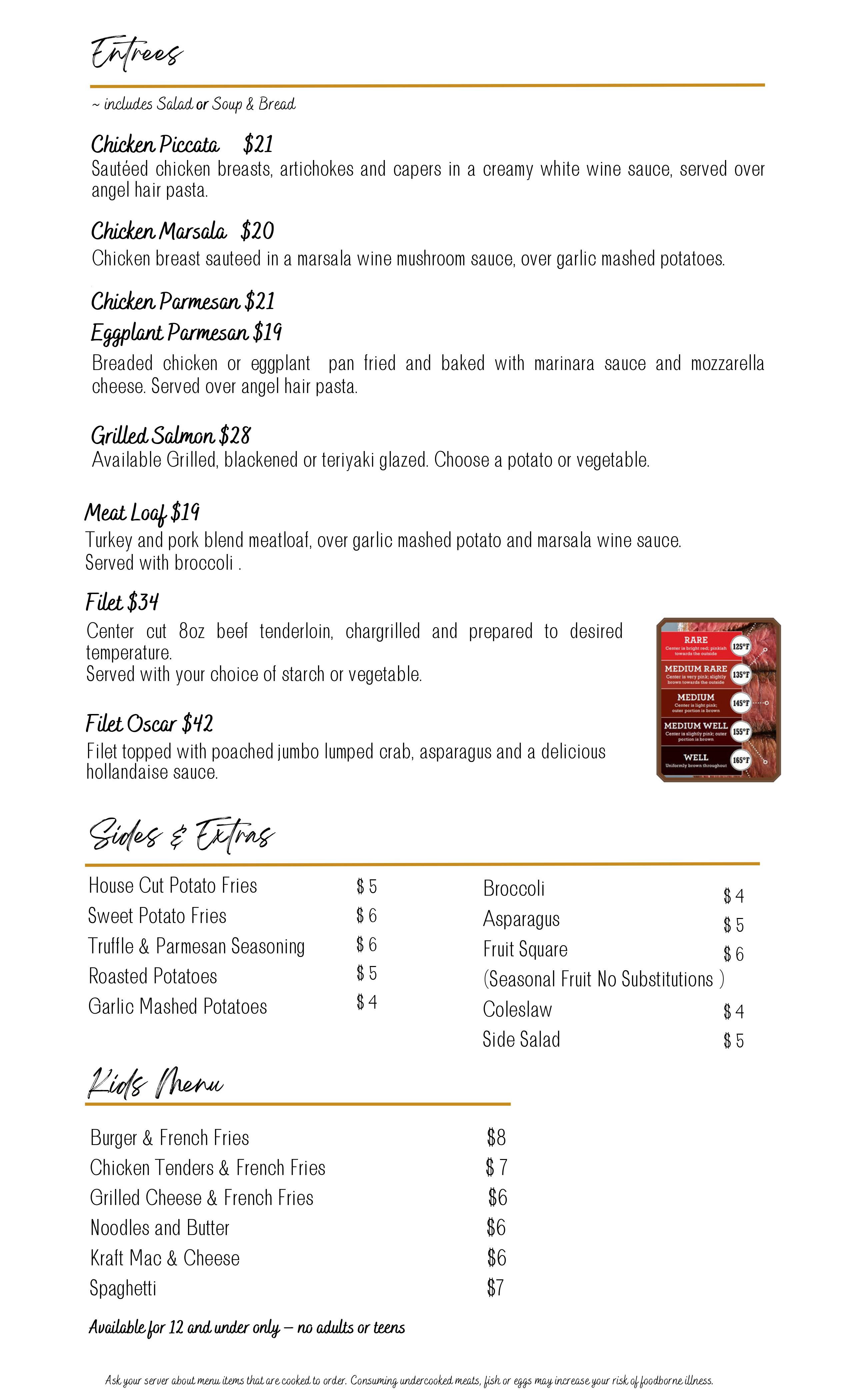 Dinner Menu Hours Monday - Saturday: 3 pm-9 pm
