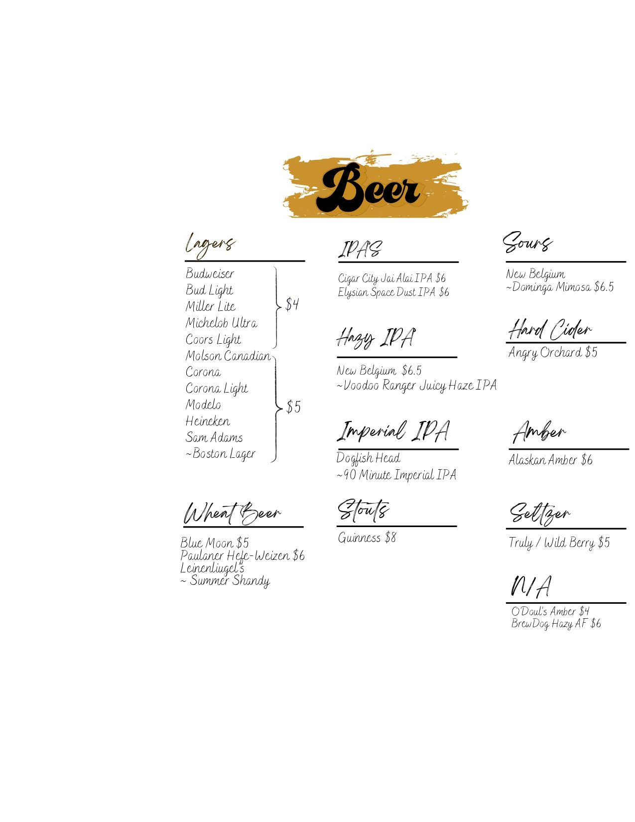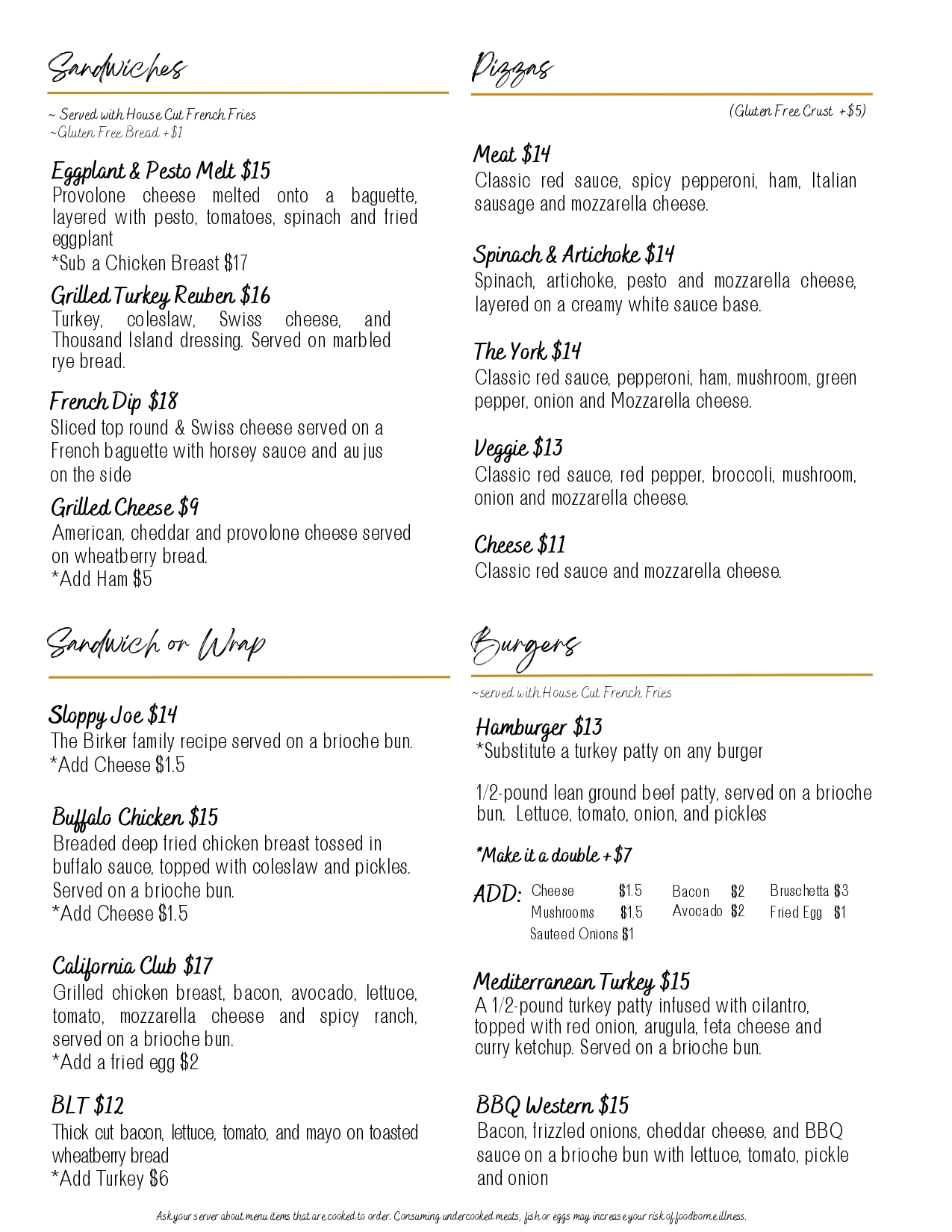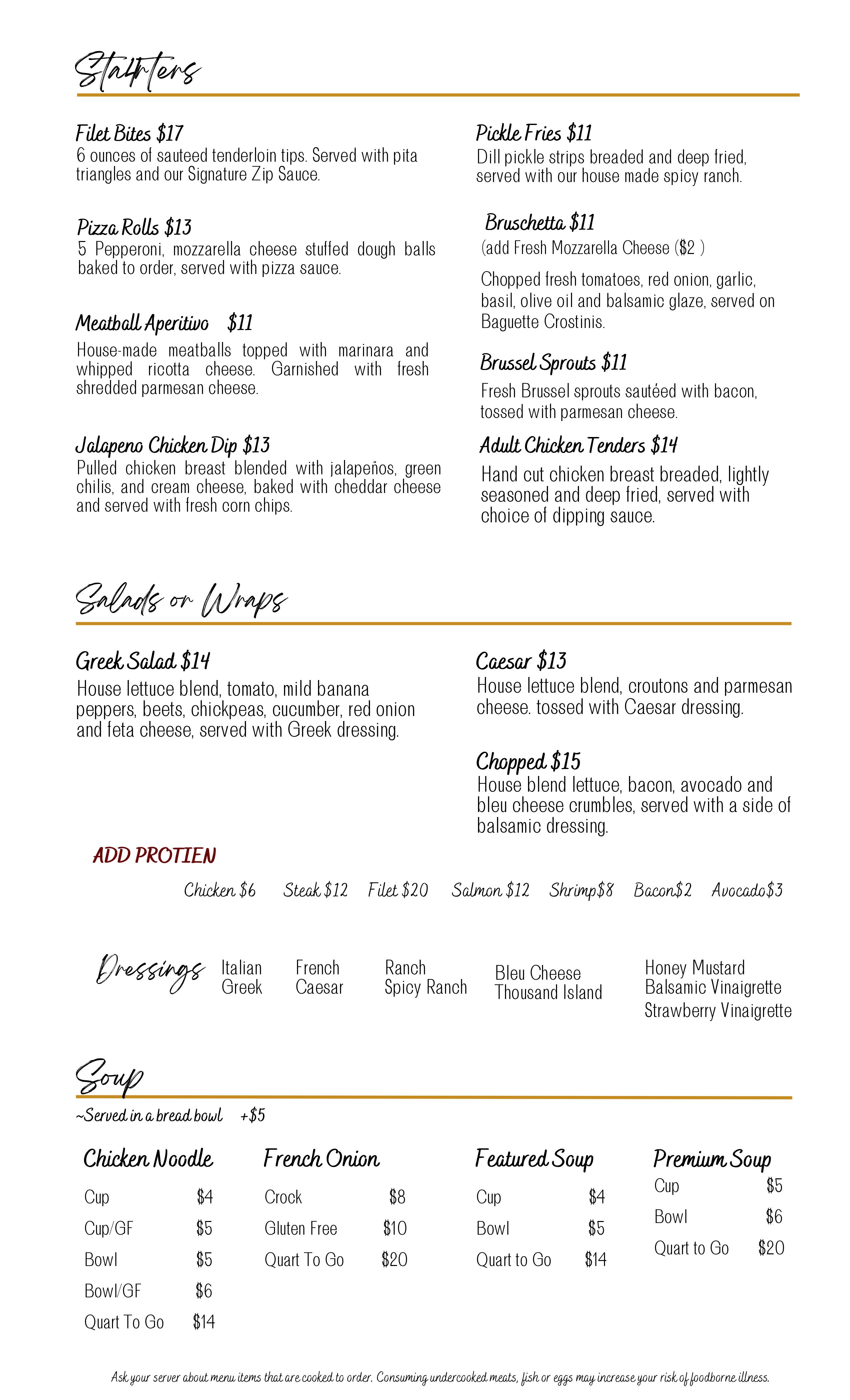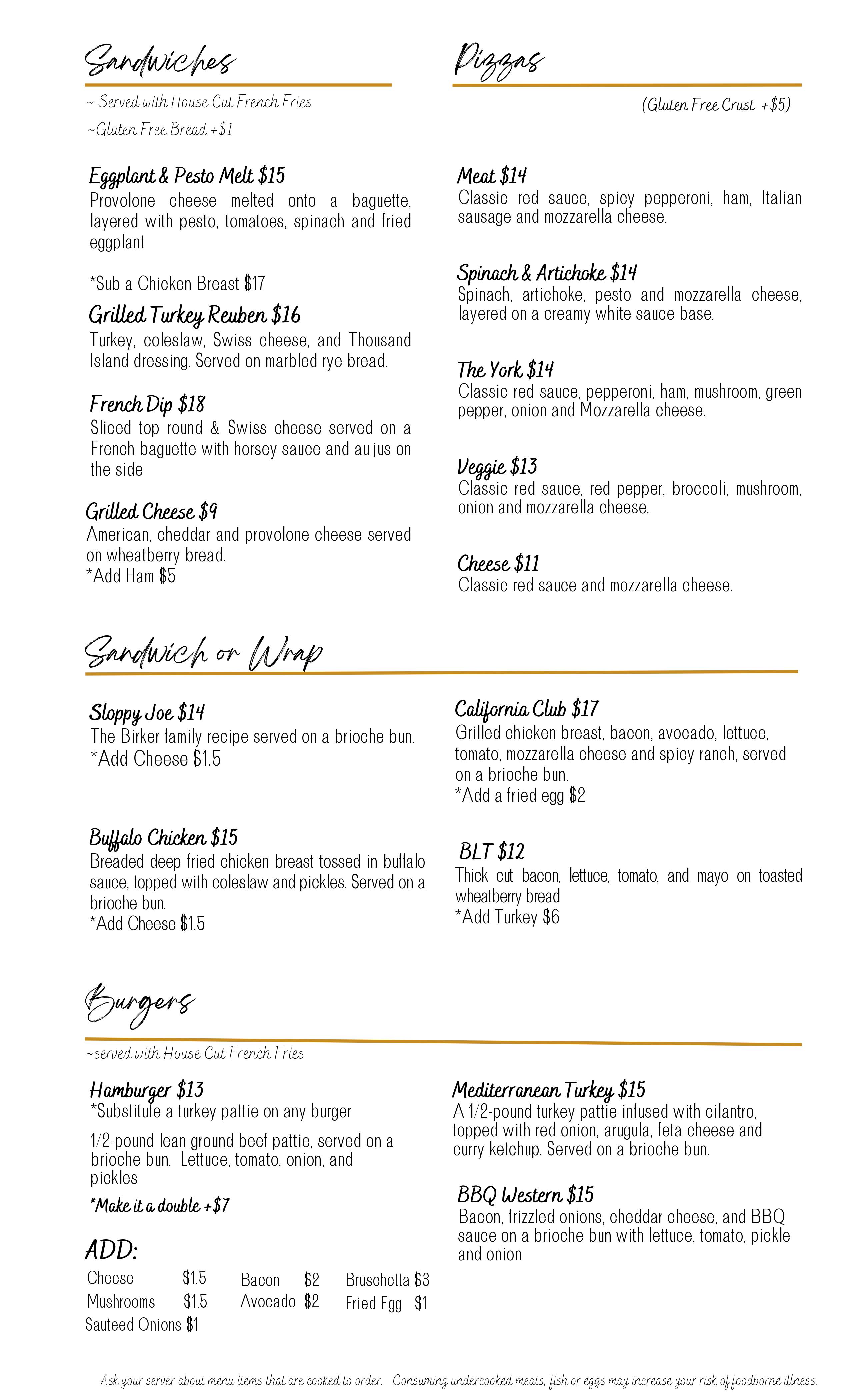 Dinner Menu Hours Monday - Saturday: 3 pm-9 pm