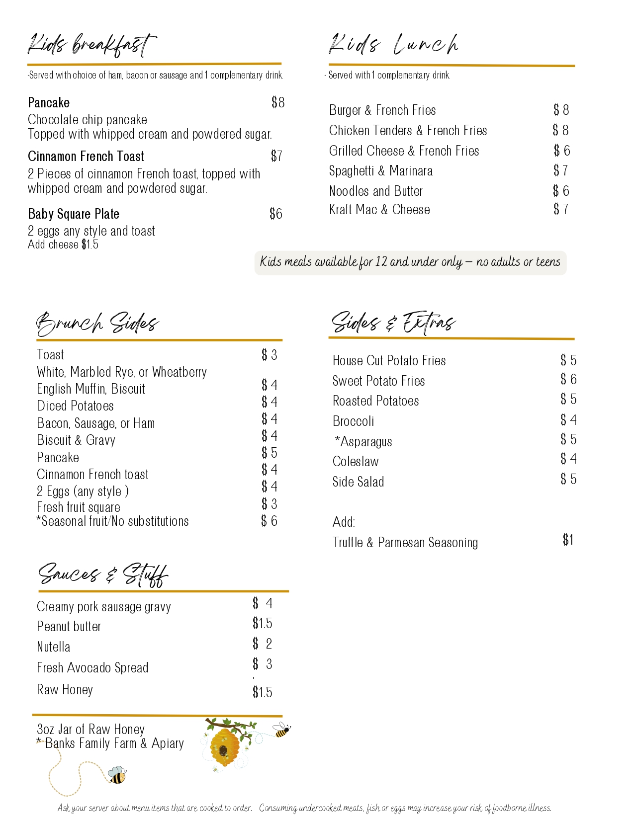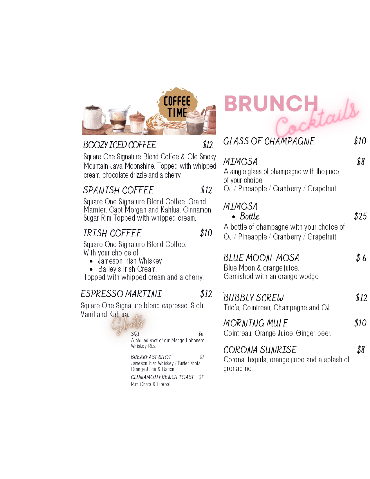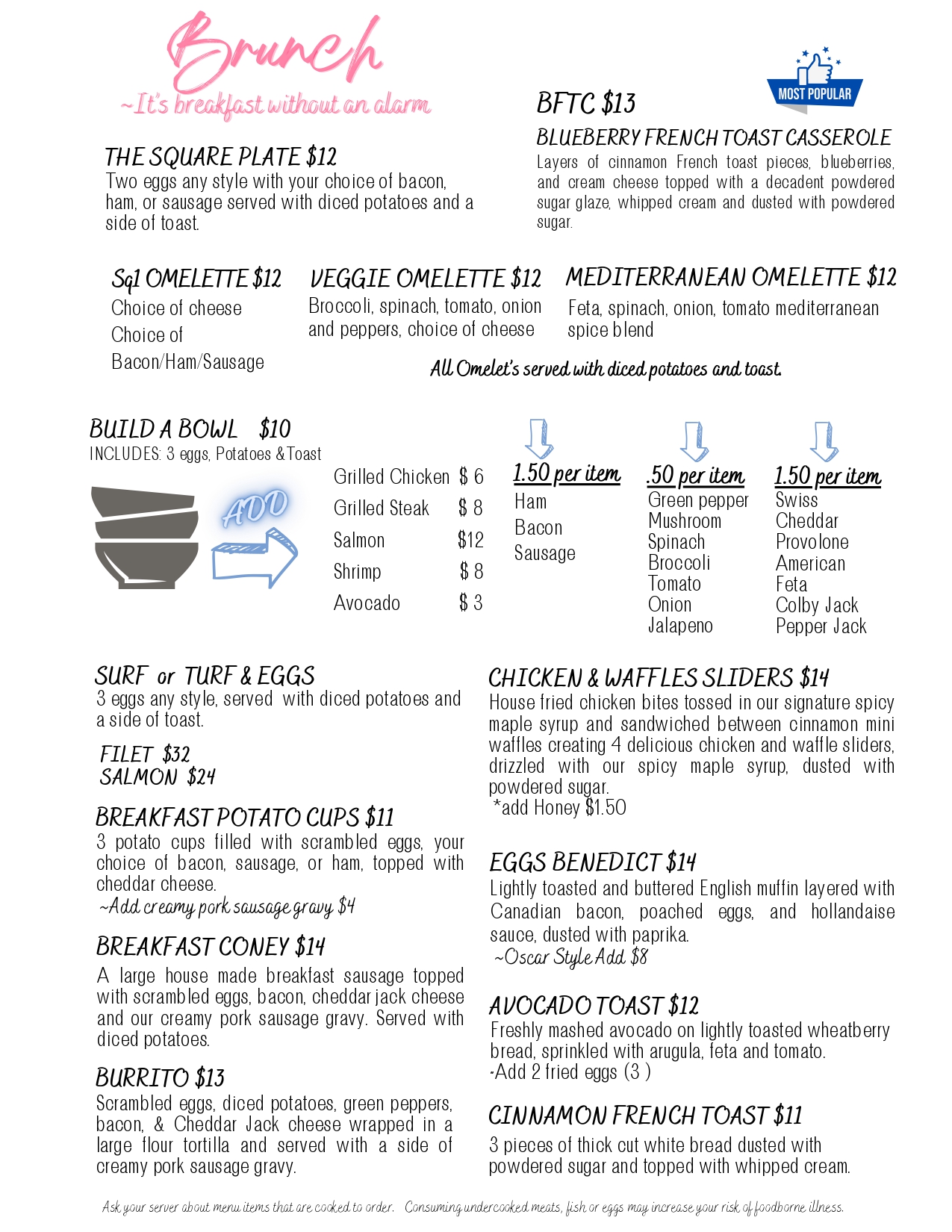 Brunch Menu Hours Monday - Friday: 11 am-3 pm Saturday & Sunday: 9 am-3 pm